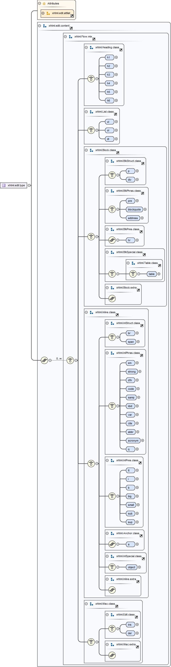 Editing Elements This is the XML Schema Editing Markup module for XHTML *ins, del This module declares element types and attributes used to indicate inserted anddeleted content while editing a document. $Id: xhtml-edit-1.xsd,v 1.2 2005/09/2622:54:53 ahby Exp $